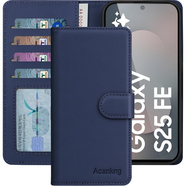 아칸크 갤럭시 S25FE 5G / SM-S731N 지갑형 가죽 카드수납 다이어리 휴대폰리 케이스+지문인식 보호필름 풀세트