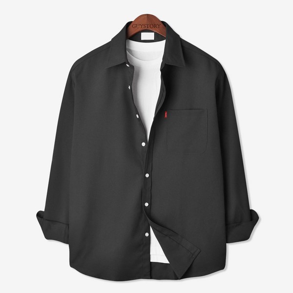 가이스토리 남성용 사계절 피셔 포켓 긴팔 빅사이즈 캐주얼 셔츠